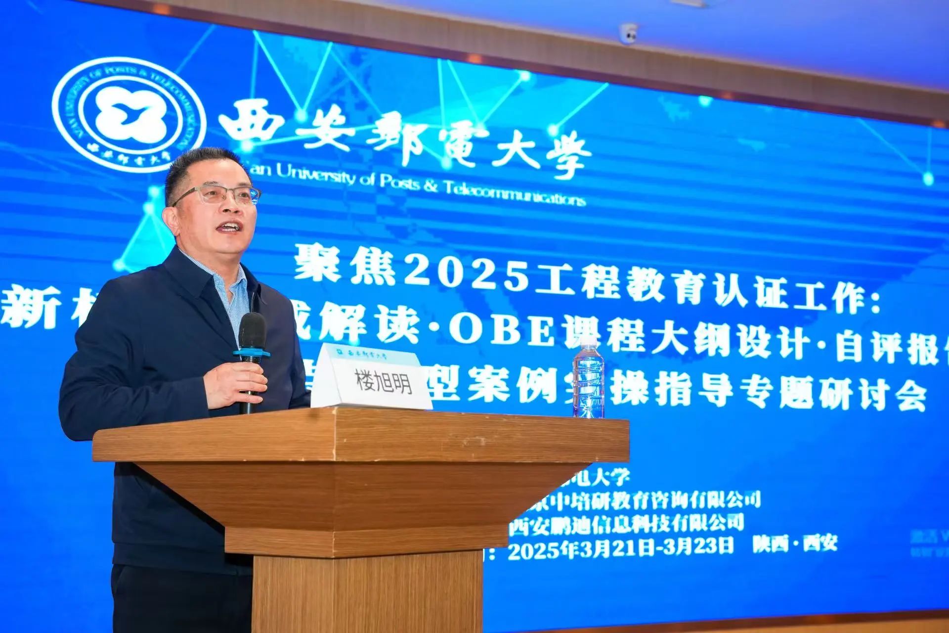 開幕式由西安郵電大學計算機學院院長陳彥萍主持。會議伊始,西安郵電大學副校長樓旭明致開幕辭,向參會的各高校領(lǐng)導、管理及教學單位負責人、骨干教師們表示誠摯歡迎,對深入理解工程教育認證標準、推進OBE課程大綱設(shè)計及專業(yè)認證工作的重要意義進行了闡述,期待本次研討會匯聚各方經(jīng)驗與智慧,為提升我國工程教育質(zhì)量、推動專業(yè)建設(shè)邁上新臺階貢獻力量。